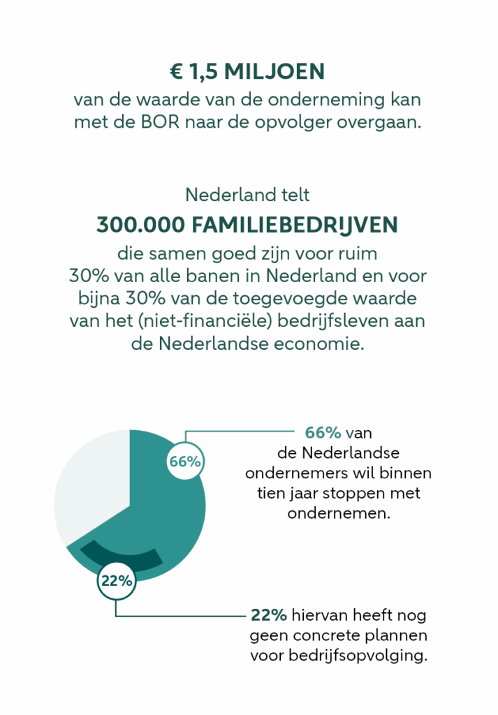 Tijdig nadenken over de overdracht heeft veel voordelen, schetst de expert. De wensen en mogelijkheden rond die overdracht zorgvuldig verkennen vraagt nu eenmaal tijd. Ook kunnen ze zo optimaal gebruikmaken van de bedrijfsopvolgingsregeling (BOR). Hun dochter hoeft bij de overname dan slechts beperkt schenkbelasting te betalen. Kiest Christa toch een ander pad, dan kan diezelfde bedrijfsopvolgingsregeling ook dienen om de onderneming op een fiscaal aantrekkelijke manier over te dragen aan de medewerkers.
