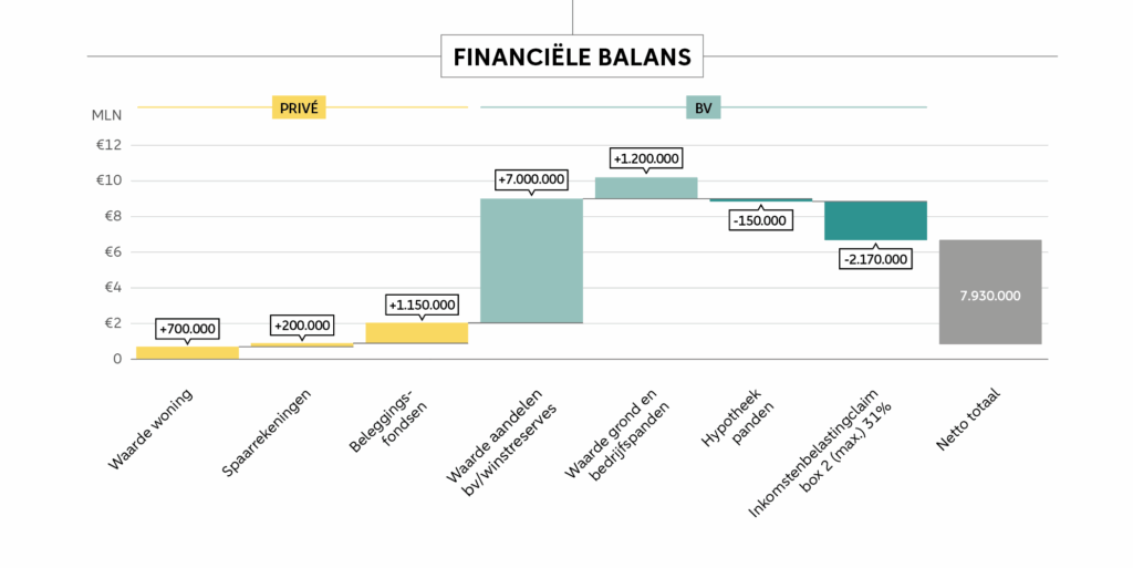 De twee hebben een woonhuis waarvan de hypotheek al jaren geleden is afbetaald. Daarnaast hebben ze het terrein waarop de onderneming is gehuisvest en de twee bedrijfspanden in eigendom. Op de panden rust een kleine hypotheek.